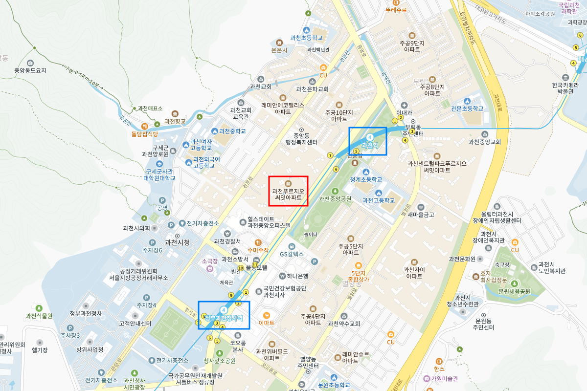과천푸르지오써밋 아파트 인근에 위치하고있는