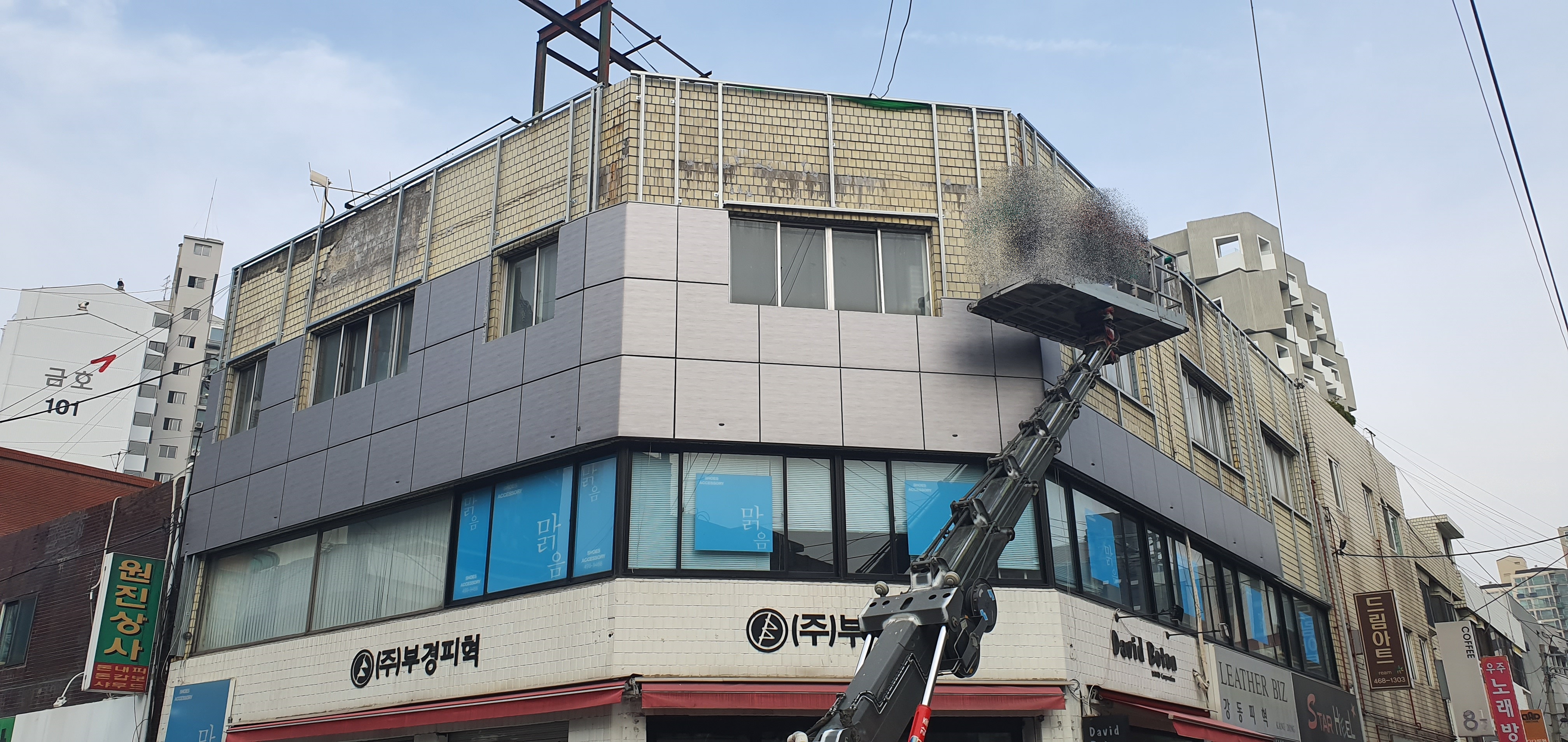 오래된 건물의 외벽 리모델링 공사를 전문으로 하며, 루버강판, 징크강판, 징크판넬, 라인메탈판넬, 사이딩판넬 등 다양한 외장재를 활용하여 노후 건물의 가치를 새롭게 창조해 드리고 있습니다. 신축보다는 리모델링 공사에 특화된 전문 시공팀이 건물에 딱 맞는 맞춤 솔루션을 제공합니다.