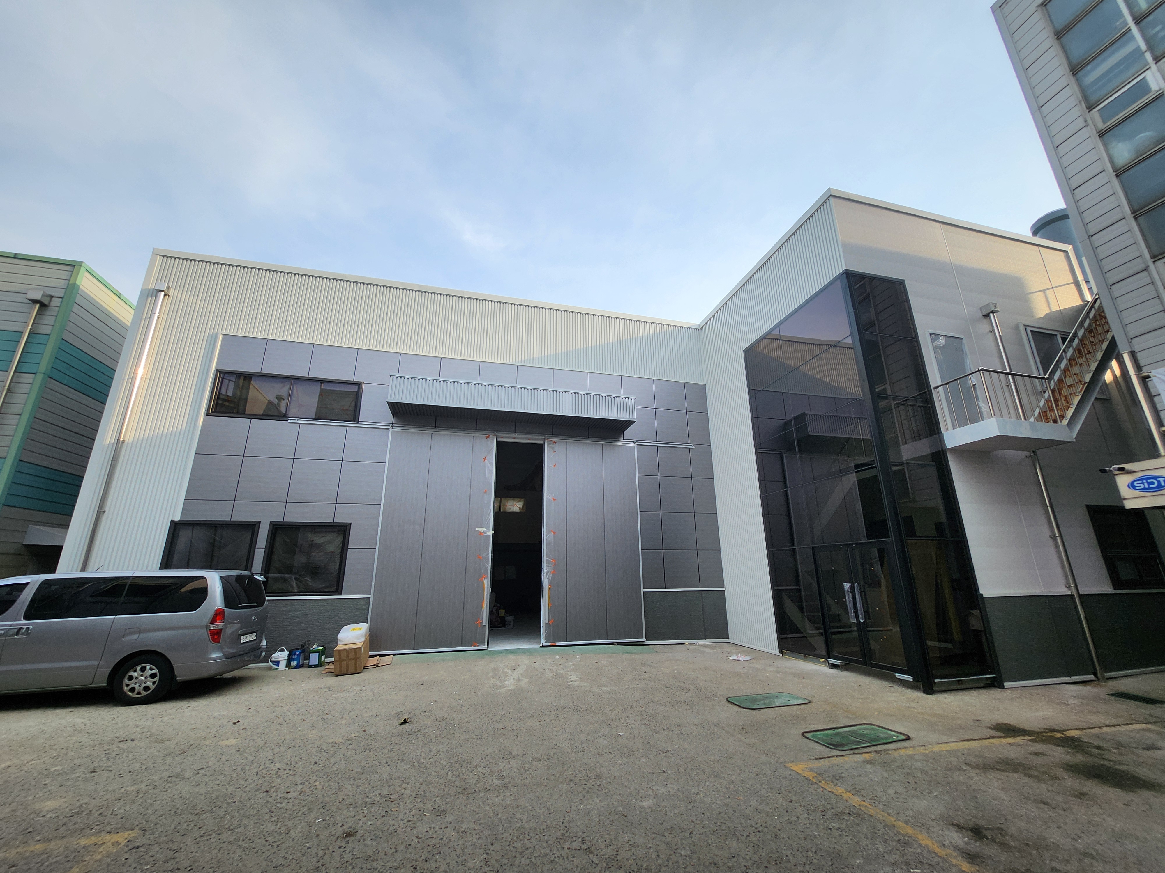 라인메탈판넬을 조화롭게 배치하여 마치 오늘 막 준공한 신축 공장 같은 비주얼을 완성했습니다.