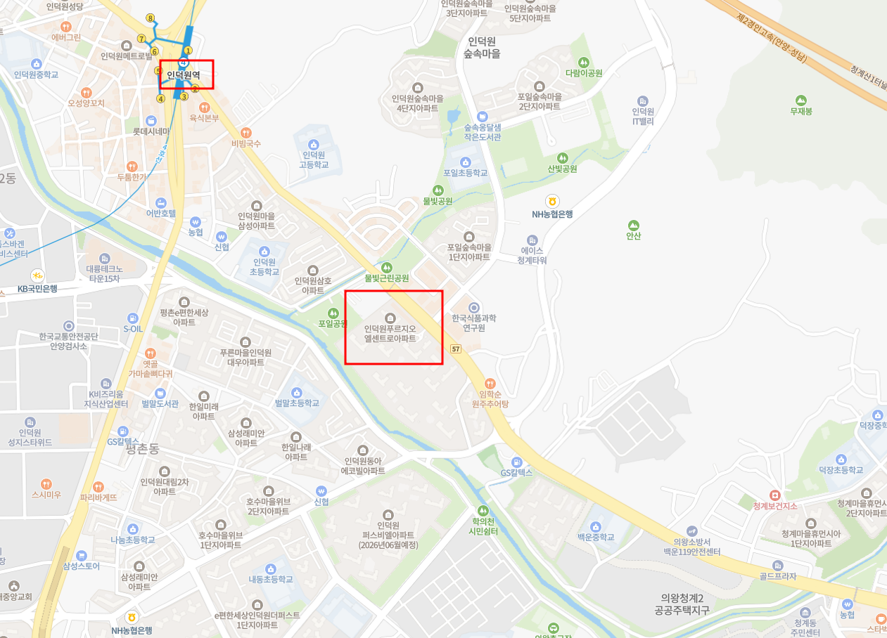 의왕시에 위치하고 있는 아파트이지만, 이름이 말하듯 인덕원에 가까이 자리 잡고 있기 때문에, 과천, 강남 쪽 이동이 편리합니다.