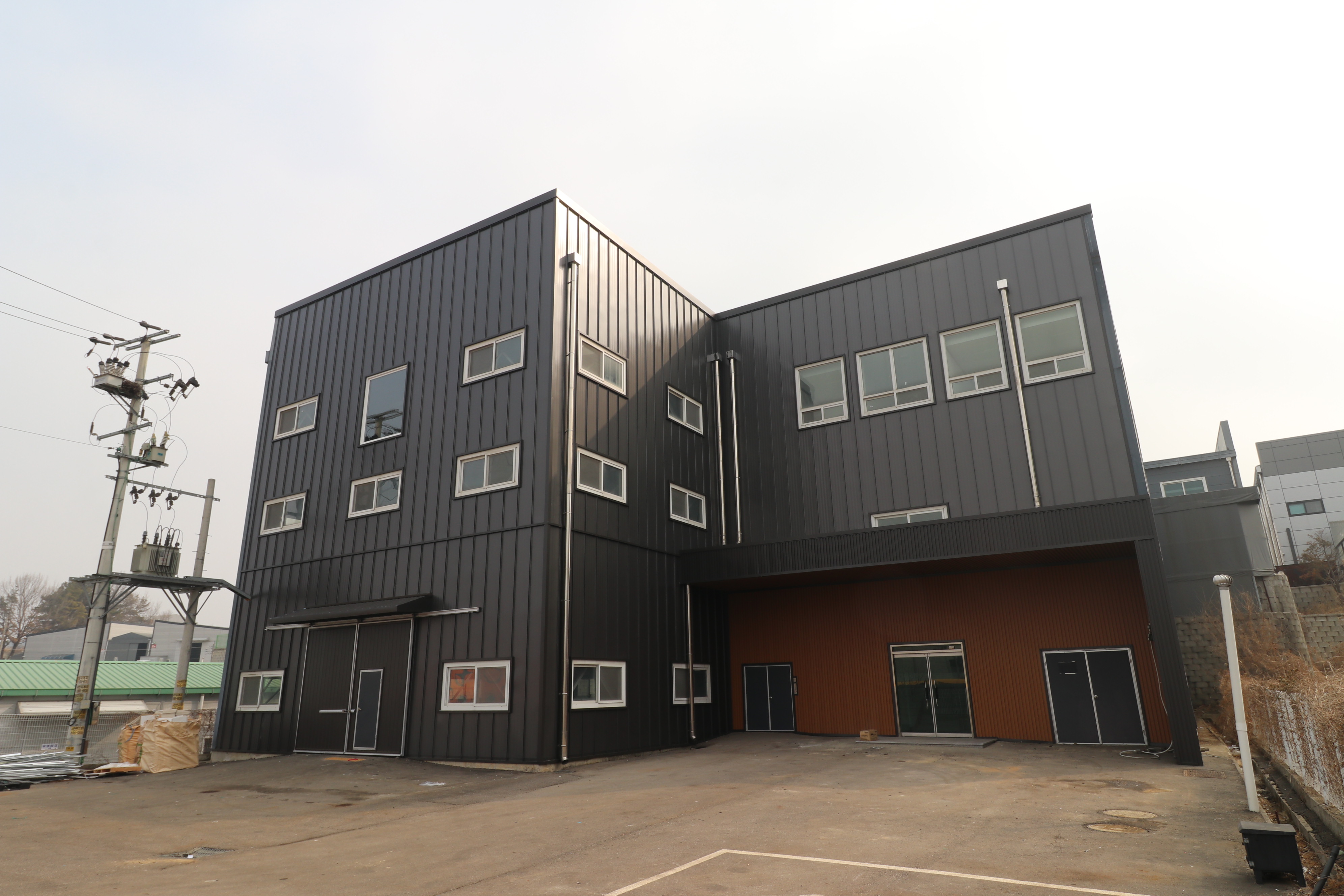 이번 현장은 노후화가 심한 공장 외벽을 루버강판 중심의 징크강판공사로 심플하게 덧방 시공한 사례입니다.