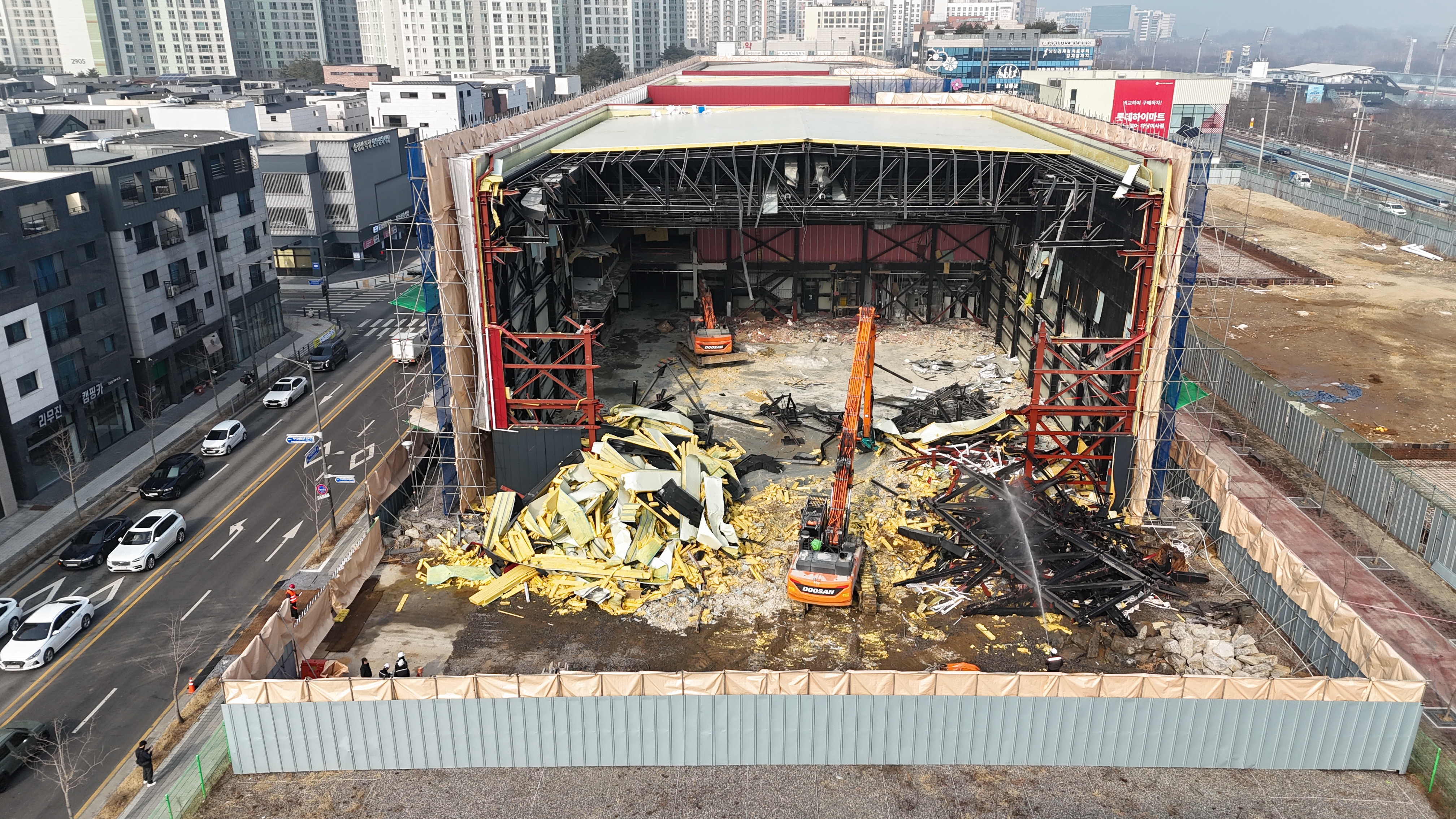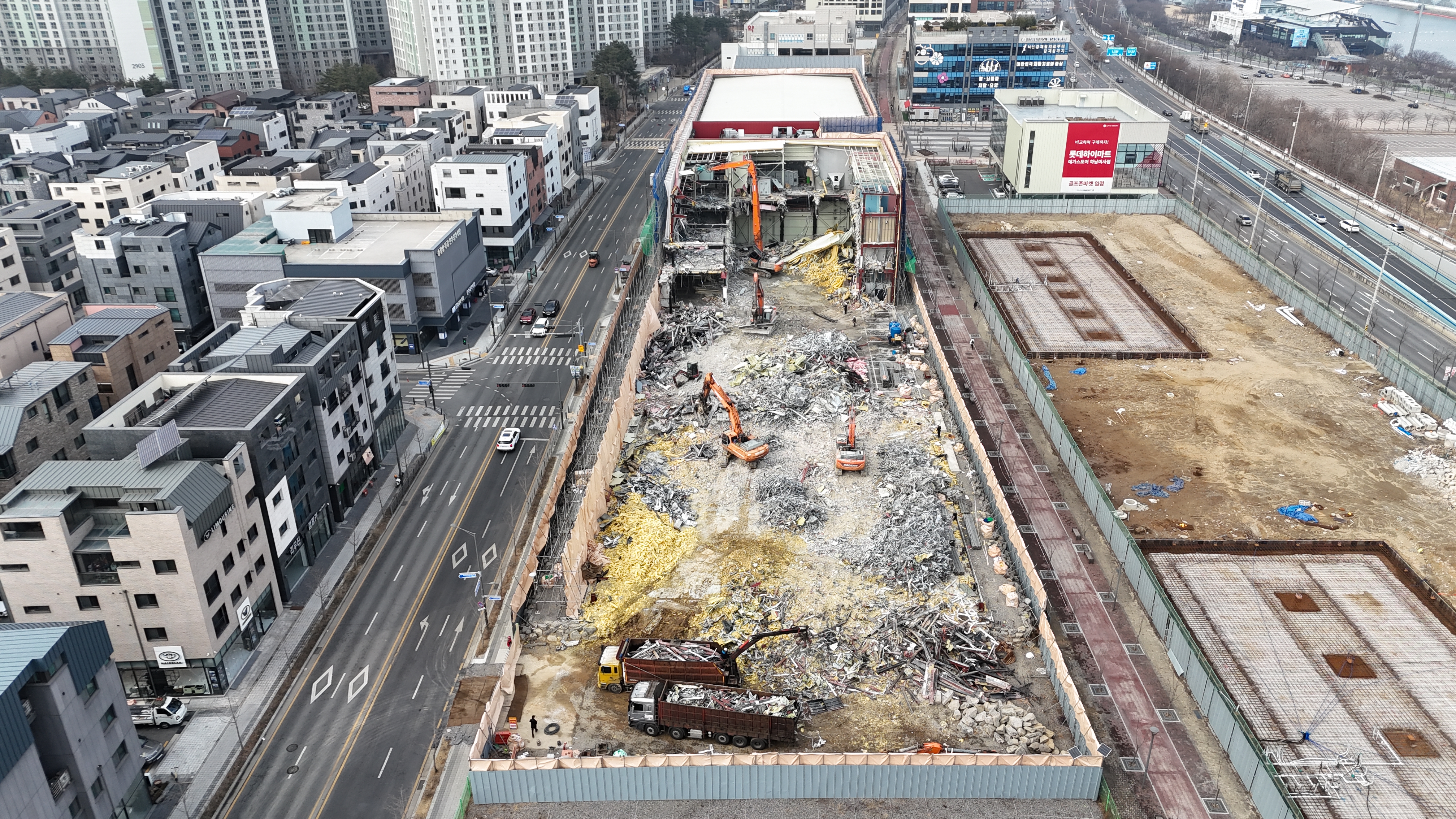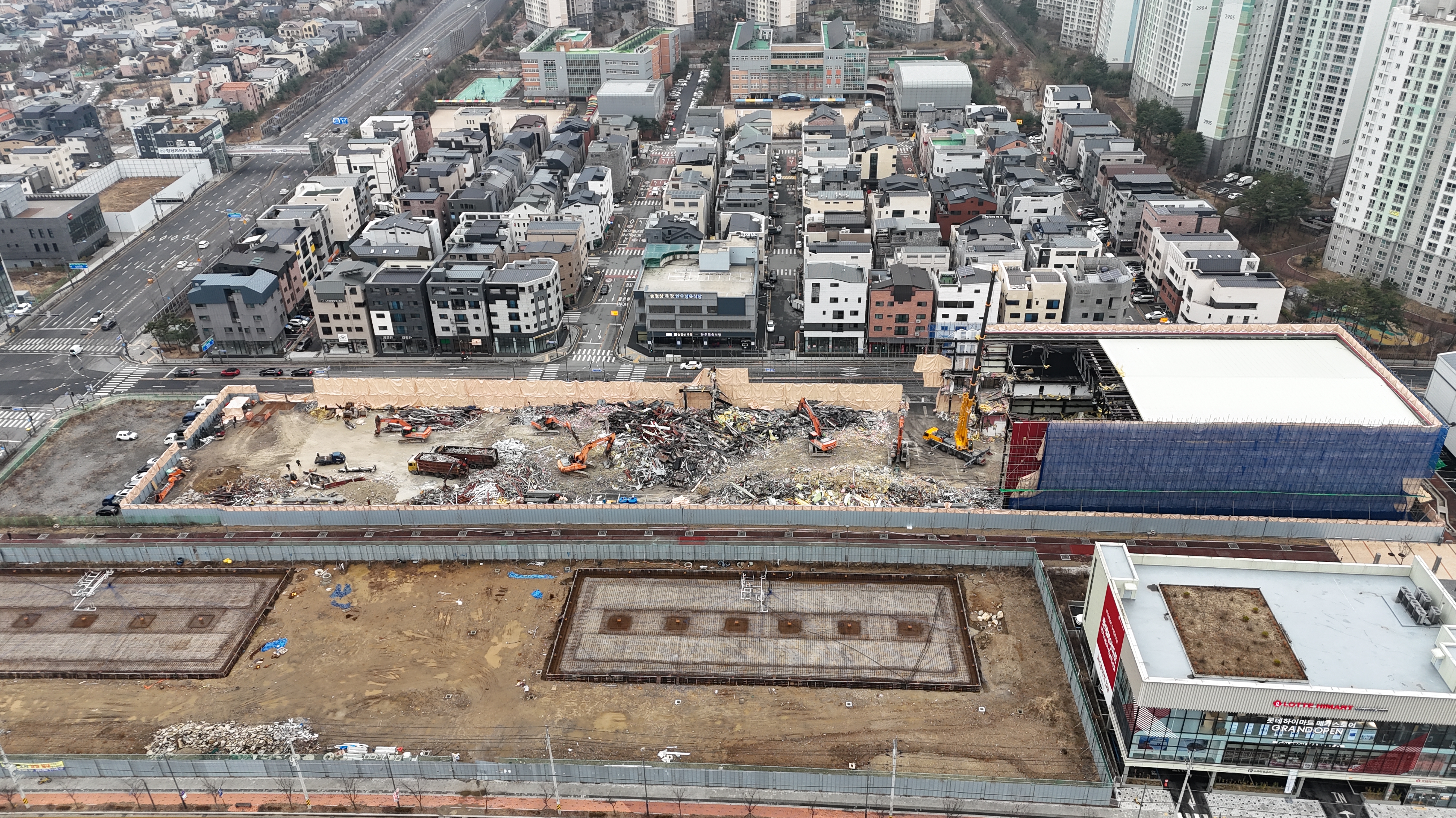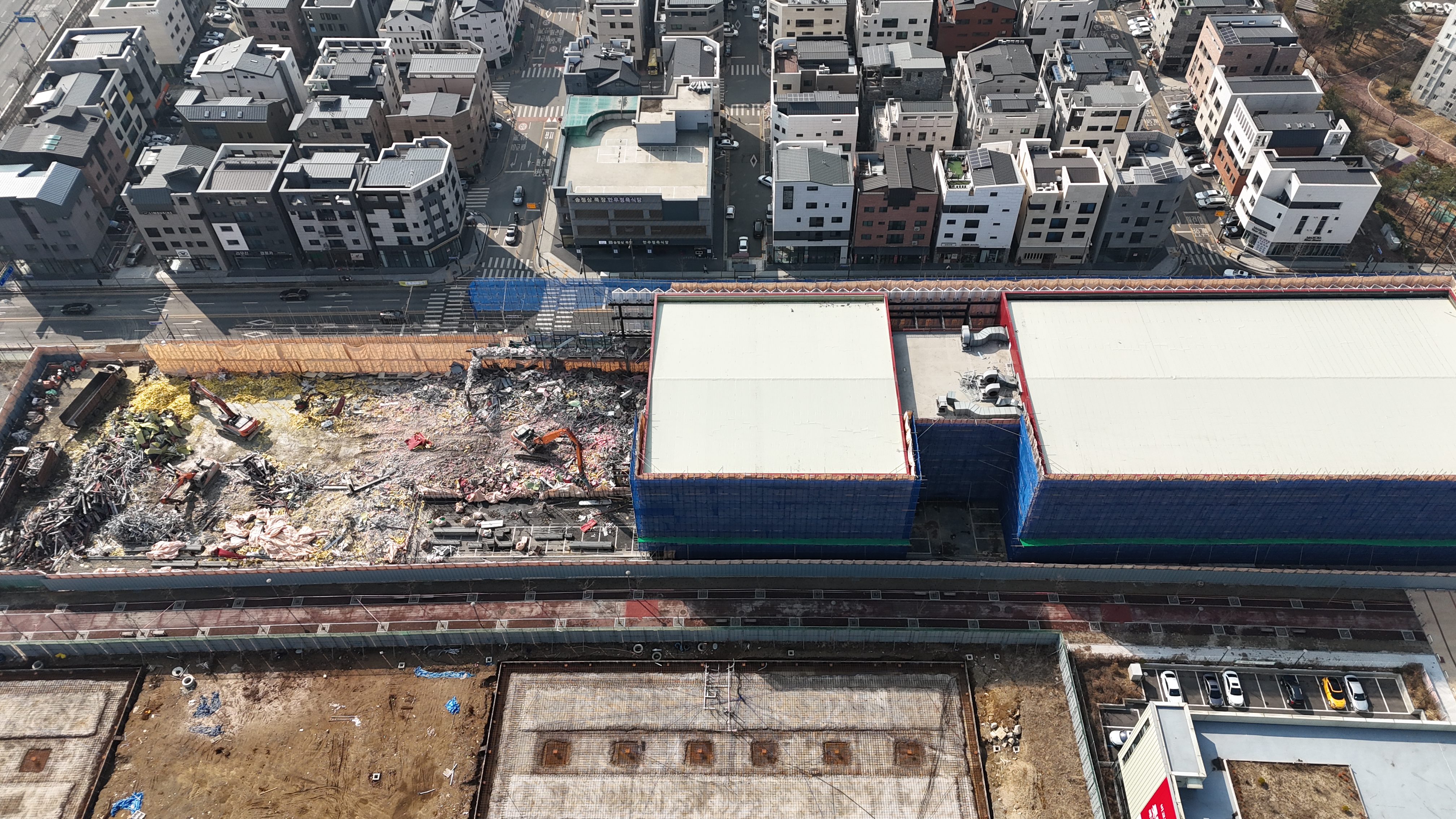 드론으로 현장을 촬영해 놓으시 실제 크기와 공사 진행사항이
